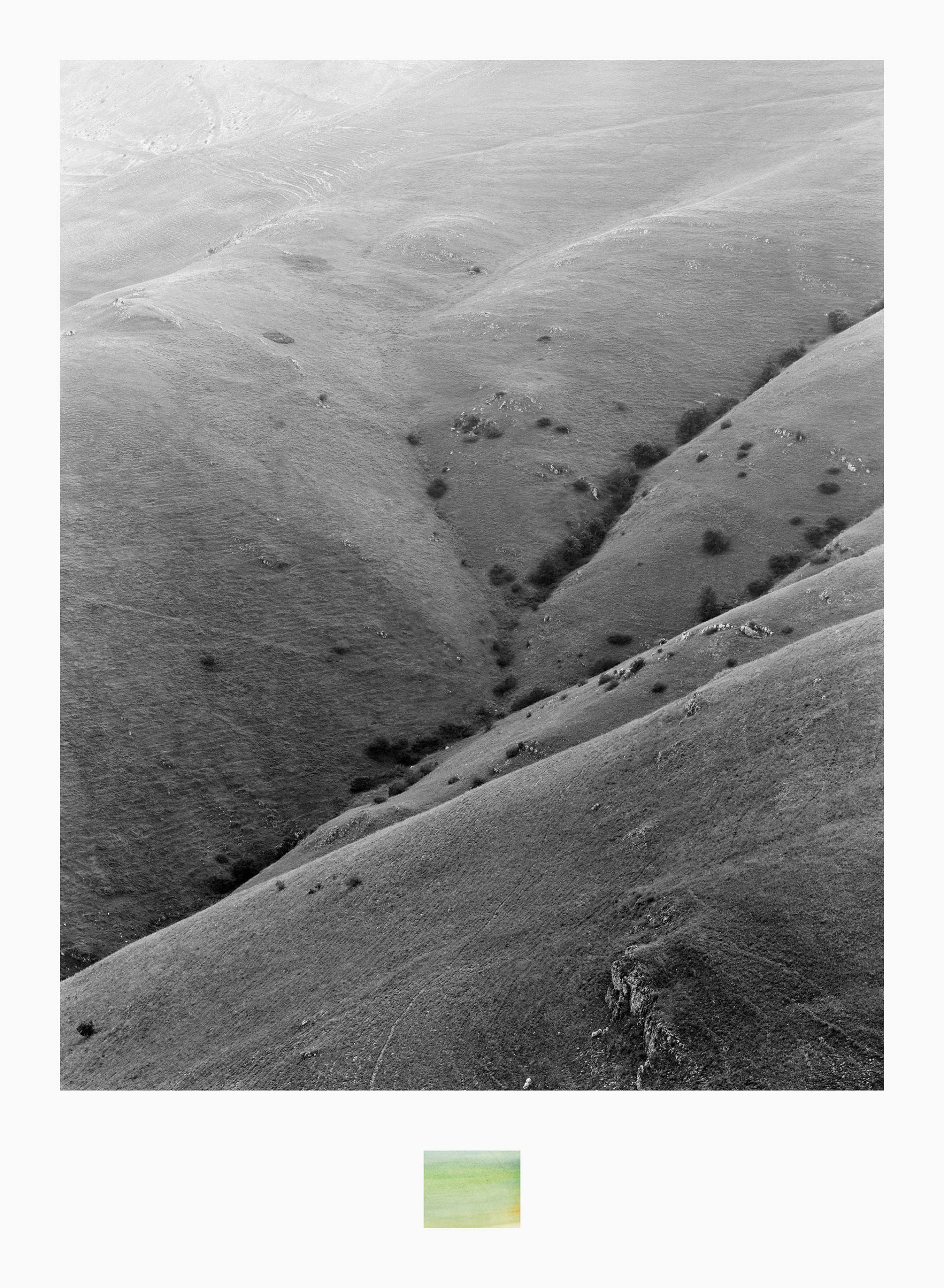 The photographs were taken with 10×12 negative black and white film (Tmax100). After each shot, I used watercolours to reproduce the colours perceived in that situation.